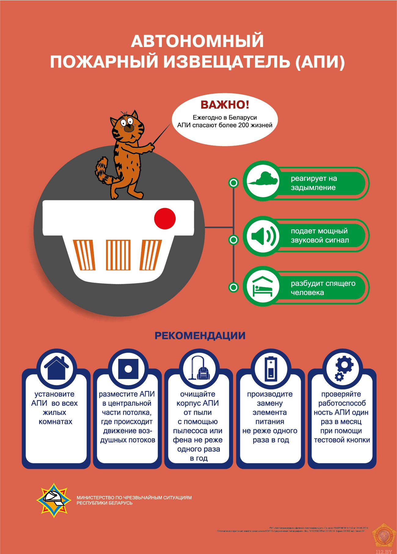 Советы, запреты и правила при эксплуатации печного отопления Пик «печных» пожаров приходится на отопительный сезон в период холодов. За лето не все хозяева находят время, чтобы привести приборы и устройства отопления в порядок. Основные причины «печных» пожаров: Во-первых, нарушение правил устройства печи: · Отсутствие требуемой разделки дымовых труб в местах их прохождения через деревянные перекрытия; · расстояния между стенками печи и деревянными конструкциями перегородок и стен дома не соответствует предъявляемым требованиям; · отсутствие предтопочного листа. Под печь возводится самостоятельный фундамент. Во-вторых, нарушение правил пожарной безопасности при эксплуатации печи: · розжиг печи легковоспламеняющимися и горючими жидкостями; · размещение горючих веществ и материалов на них и в непосредственной близости от топочных отверстий; · оставление без присмотра топящиеся печи; · перекаливание печей. Рекомендации по монтажу и эксплуатации печного отопления: Качественная печь – это не только хорошая тяга, теплоотдача, экономичность и эстетика, но и безопасность. Неправильно сложенная печь может стать причиной пожара в доме. А для того чтобы этого не произошло, не поручайте кладку печи лицам, не знакомым с правилами пожарной безопасности при устройстве печного отопления. Перед началом отопительного сезона печи необходимо проверить и отремонтировать, дымоходы обязательно очистить от сажи. Неисправные печи, камины и дымоходы не должны допускаться к эксплуатации. Побеленные печи позволяют своевременно обнаруживать неисправности, трещины, которые могут привести к пожару, так как на белом фоне хорошо заметен чёрный след от дыма. Для отвода дыма следует применять вертикальные дымовые трубы без уступов. В местах пересечения дымовых труб со сгораемыми конструкциями расстояние от внутренней поверхности дымовых каналов до этих конструкций должно быть не менее 380 мм. Пол из горючих материалов под топочной следует защищать негорючим листовым или плитным материалом размерами 700х500 мм, располагаемым длинной его стороной вдоль печи. При эксплуатации печей не допускается: осуществлять топку при наличии обрушения кладки свода топливника; применять для розжига легковоспламеняющиеся и горючие жидкости (за исключением жидкостей, специально предназначенных для розжига); осуществлять топку с открытыми дверцами, за исключением случаев, когда конструкция печи предусматривает ее топку с открытым топливником; их перекаливание; размещать горючие вещества и материалы на них и в непосредственной близости от топочных отверстий; осуществлять топку углем, коксом и газом печи, не предназначенные для этих видов топлива; оставлять без присмотра топящиеся печи. Если же все-таки произошла беда, необходимо помнить правила поведения при пожаре: при обнаружении пожара сообщить об этом по телефону 101 или 112 либо непосредственно в пожарное аварийно-спасательное подразделение; при этом назвать адрес объекта, место возникновения пожара и сообщить свою фамилию; в случае угрозы жизни людей немедленно организовать их спасение, используя для этого имеющиеся силы и средства; до прибытия пожарного подразделения использовать в тушение пожара имеющиеся первичные средства пожаротушения (вода, песок, снег, огнетушители, тканевые материалы, смо